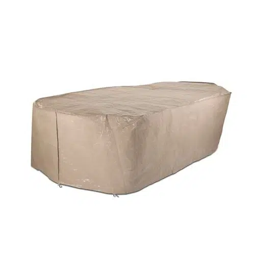 Ideal for large sized table settings (6-8 chairs + 1 table), the Polytuf Element rectangular table setting cover provides dependable protection against changing weather conditions. Made from UV treated, double coated woven polyethylene fabric.